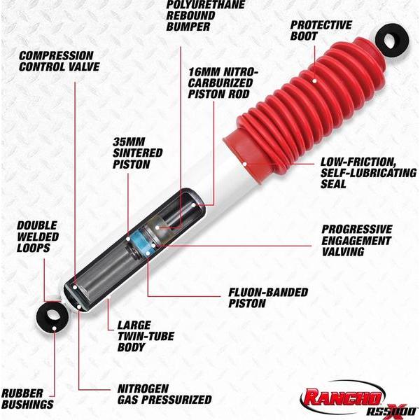 Công nghệ cốt lõi của phuộc giảm xóc thế hệ mới RS5000X từ Rancho là hệ thống van đĩa nén hồi phục độc đáo và được cấp bằng sáng chế với công nghệ cải tiến chu kỳ nén. Quy trình độc quyền này được phát triển bởi các chuyên gia kỹ thuật tại Rancho, nâng cao khả năng kiểm soát và tăng hiệu suất toàn diện cho chiếc xe của bạn trên cả đường trường và đường địa hình.